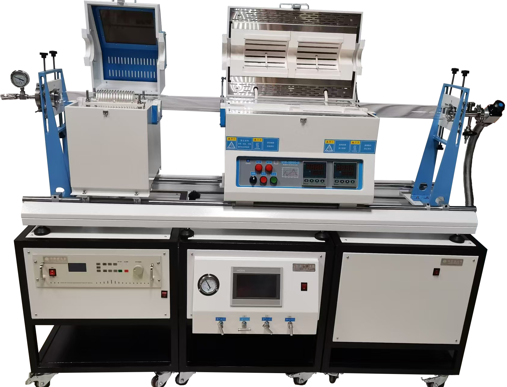 ?爐管:高純石英管φ100*1000mm,鍍鉻鋼制成的雙滑軌,手動滑軌長度1400mm。